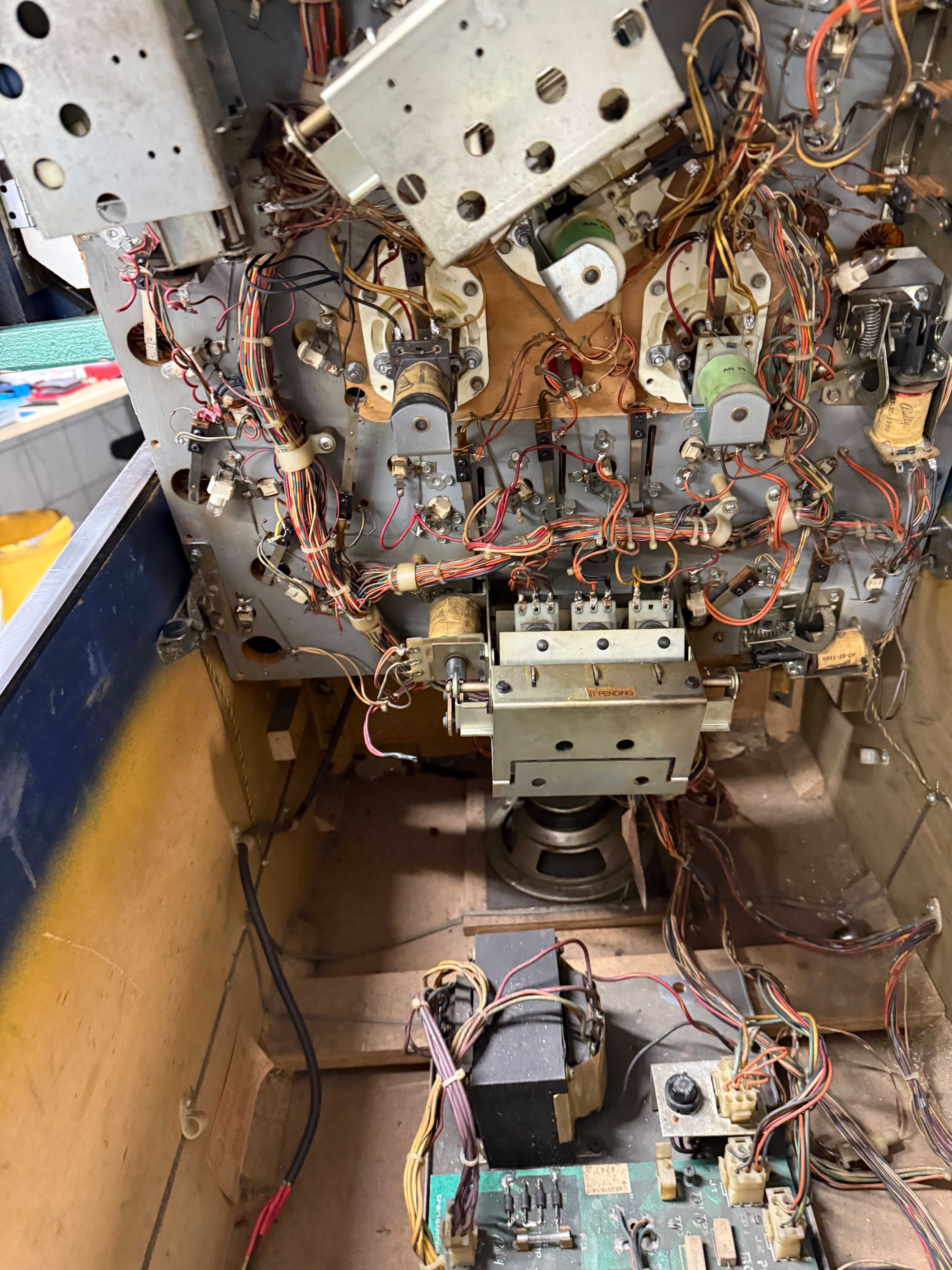 Das Backglas und auch das Cabinet befindet sich in einem schönen Originalzustand. Der vordere Backbox Rahmen wurde in Grünmetallic nachlackiert. Das Spielfeld hat hier und da Aufgrund des Alters Abspielungen, alles in allem ist es jedoch noch in einem schönen Originalzustand und definitiv eine Basis zum Wiederaufbauen. Es ist eine Bally LISY35 MPU verbaut.